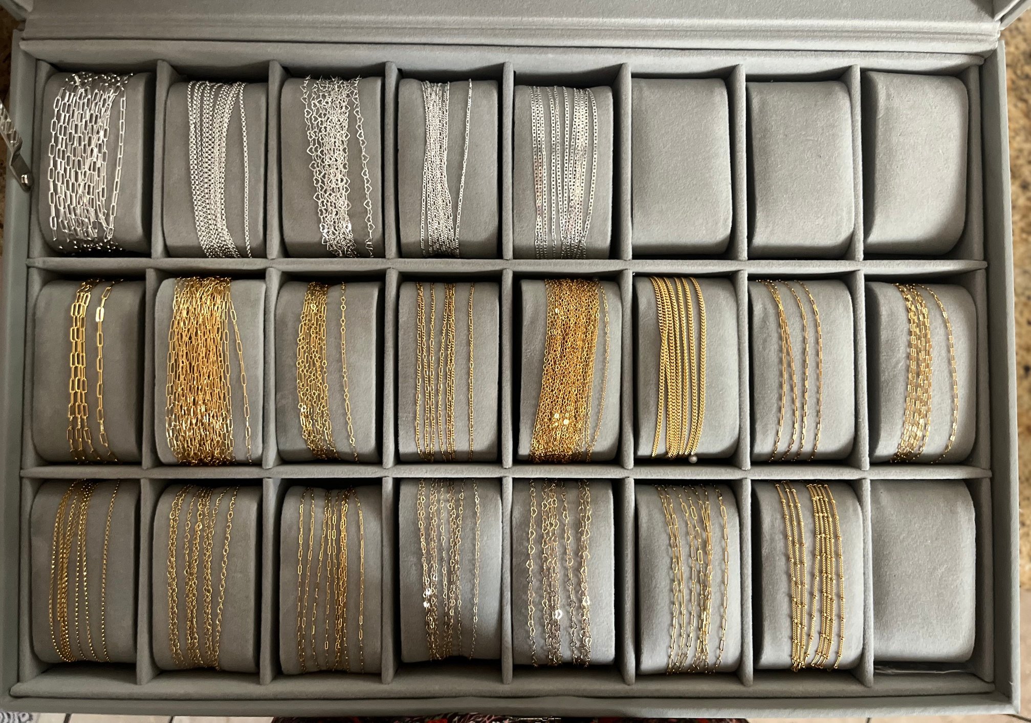 Your new piece can last years and years with good care! Although it’s “permanent” our chains are dainty, fine jewelry is not indestructible. Should your chain stretch or break, bring it in to be resized or re-welded!